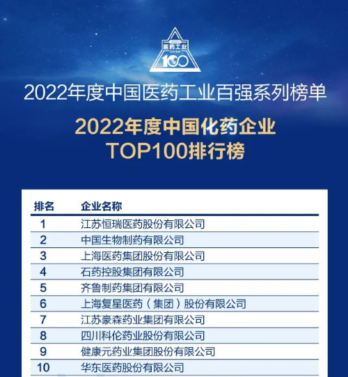 佳音频传!AG亚游集团医药再次蝉联中国化药企业百强榜首